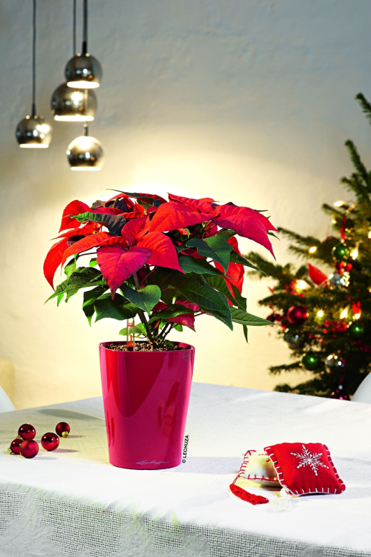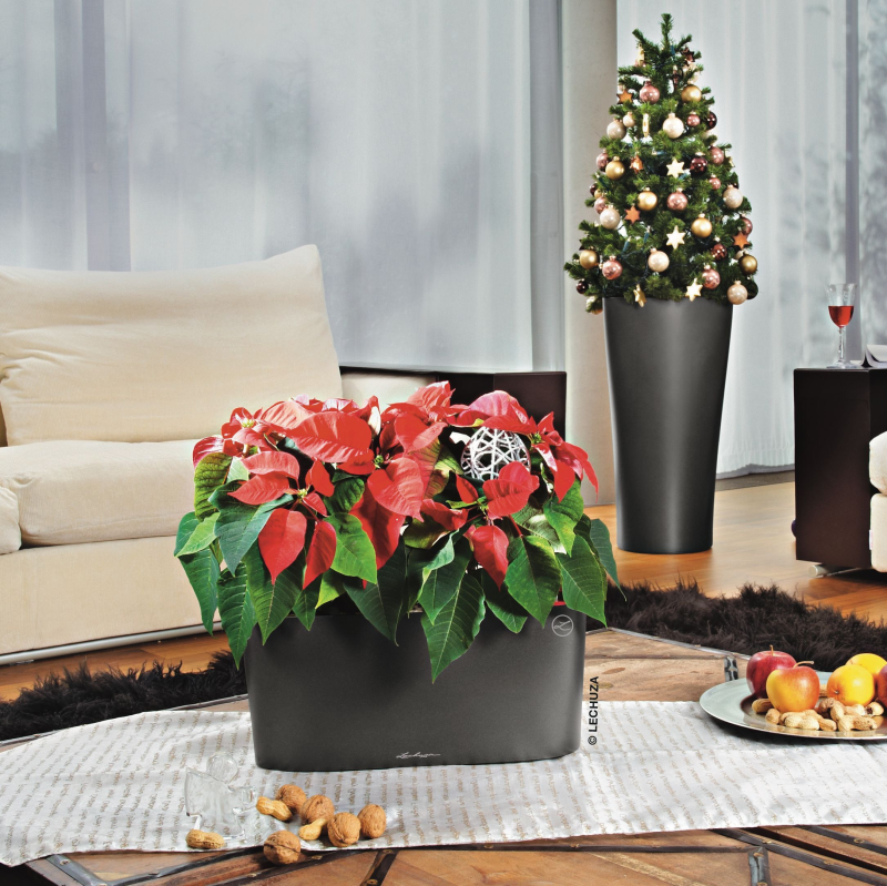 Ranging in size from dainty minis that beautifully serve as natural decorations in their own right, to larger, bushy plants that can form the basis of sensational centrepieces, poinsettias should be your go-to plant if you want to shout ‘CHRISTMAS’ from your windows, tables, shelves and mantelpieces. These pink poinsettias look fabulous in dark glossy CUBE planters from LECHUZA, whilst traditional red makes a real statement in the Scarlet glossy version (RRP: £18.69)